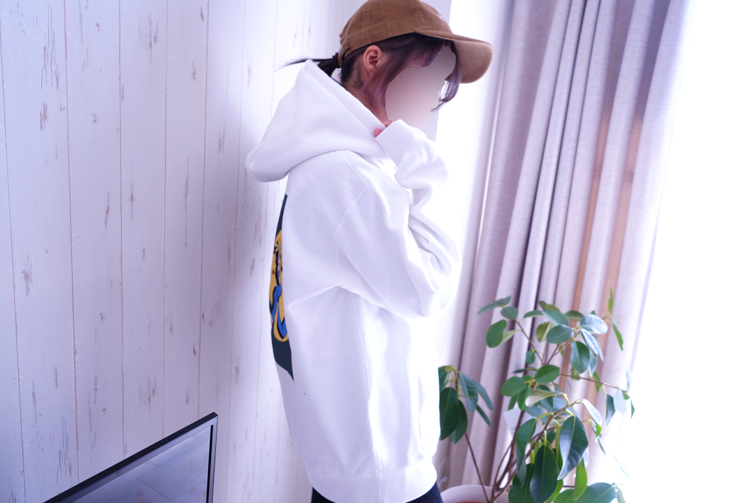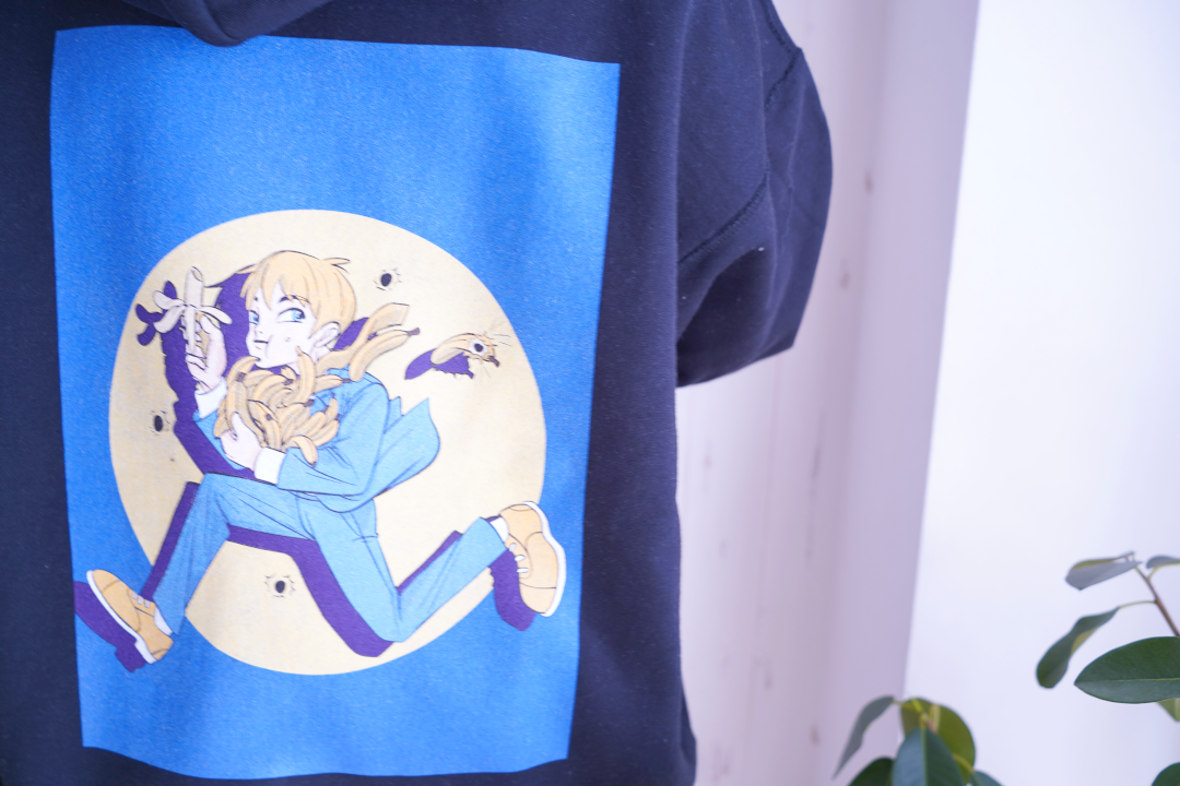 デザイナーさんがデザインしてくれた【ばななを抱えたむーんばなな】のバックプリントがおしゃれでかわいいデザインパーカー。